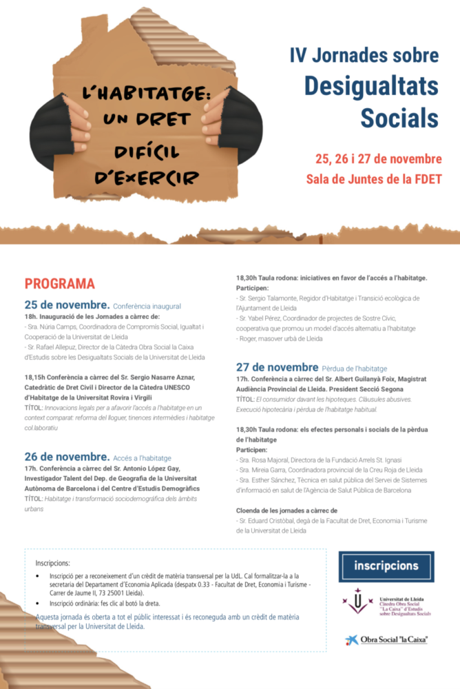 IV Jornades sobre Desigualtats Socials “L’habitatge: un dret difícil d’exercir”